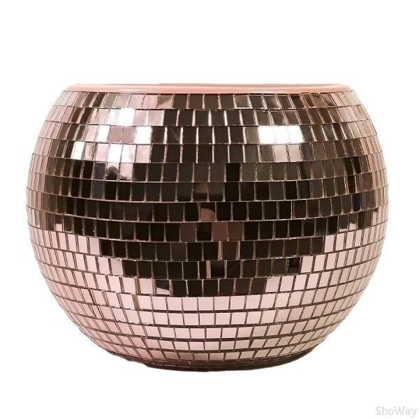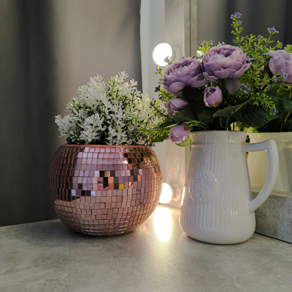 Зеркальное кашпо настольное в форме диско-шара, 20 см розовое золото