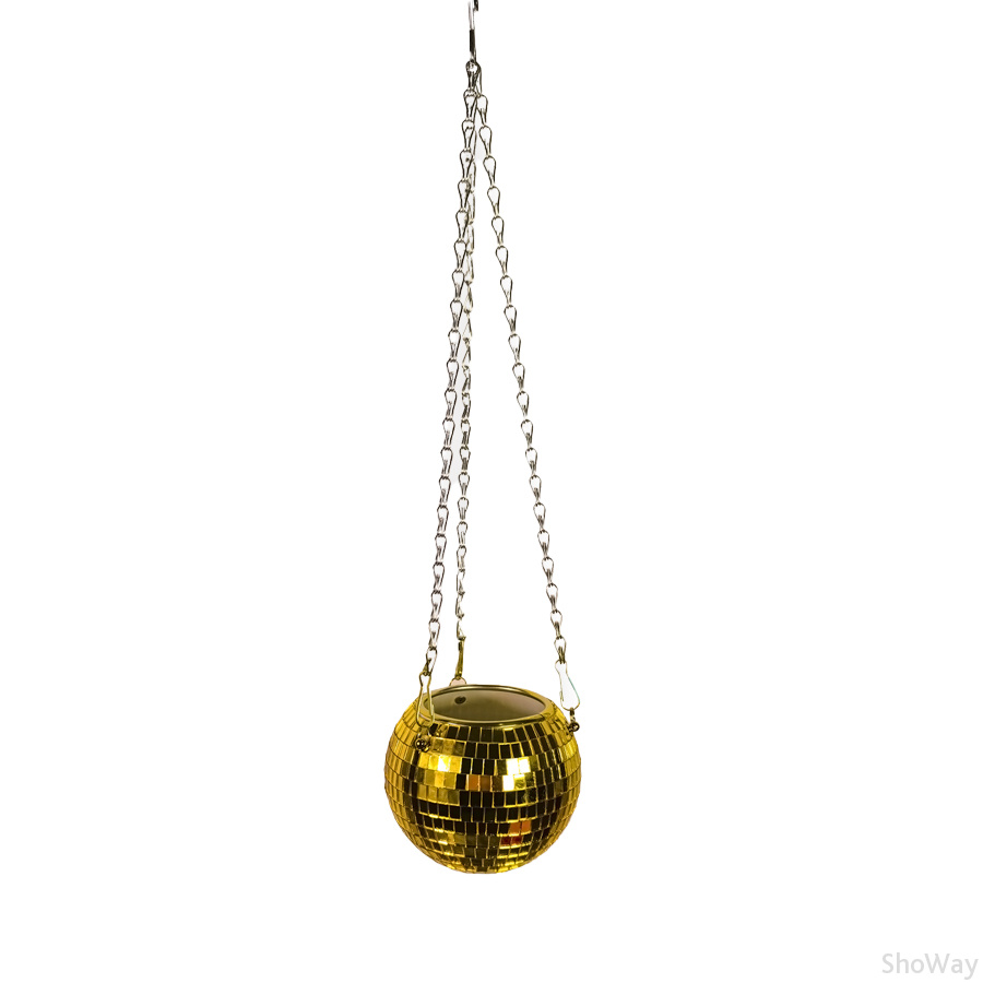 Зеркальное подвесное кашпо в форме диско-шара, 12 см золотое
