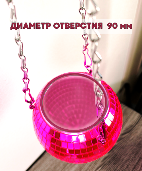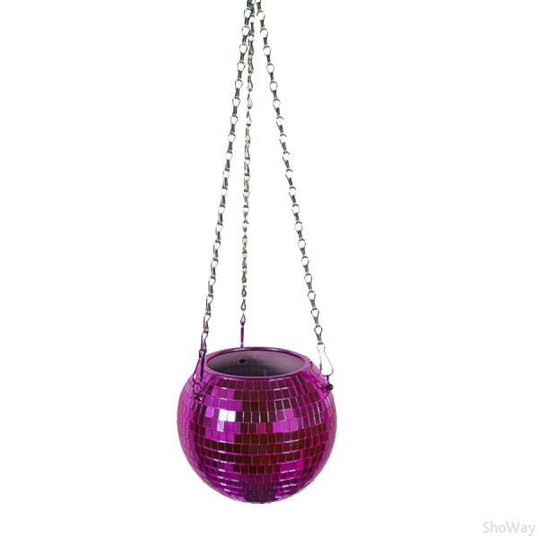Зеркальное подвесное кашпо в форме диско-шара, 15 см пурпурное